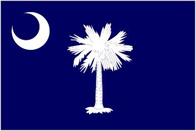 South Carolina has a crescent moon, and it is reasonably astronomically correct, though exaggerated as to curvature. Many other crescent moons float on flags around the world, usually Muslim flags. (South Carolina is known as the Palmetto State, with a palmetto on its flag. Georgia is known as the Peach State. South Carolina grows more peaches than Georgia, and Georgia has more palmettos than South Carolina.)
